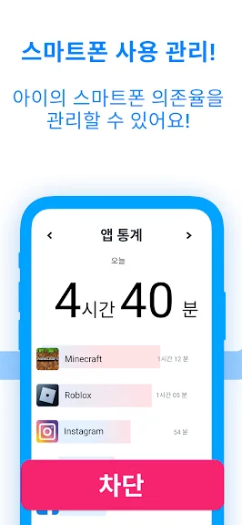 스크린 타임 관리: 아이가 휴대폰을 얼마나 사용하는지 확인하고, 과도한 사용을 방지할 수 있습니다.