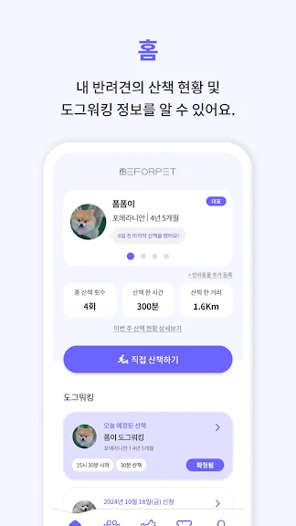 아래는 비포펫-강아지 산책 서비스, 펫시터, 돌봄, 도그워커 어플에 대한 스크린샷 정보입니다.