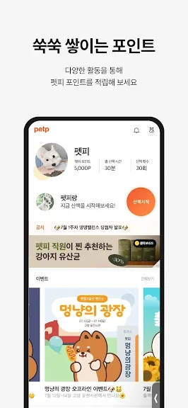 2) 펫피 - 포인트 적립형 강아지 산책 앱 어플 스크린샷