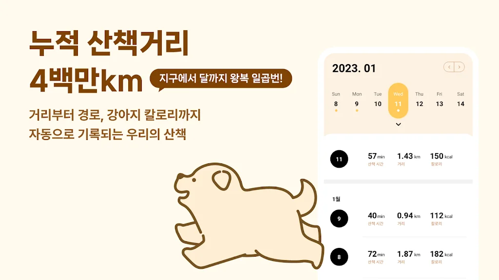 우리가 함께 걸은 거리, 시간, 강아지 칼로리 같은