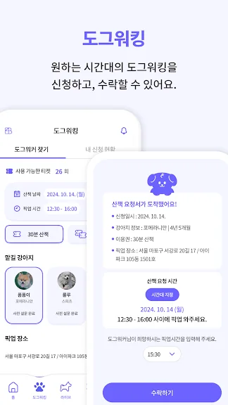 - 신원 검증된 우리 동네 도그워커의 산책 대행 서비스