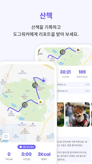 - 출입 영상, 산책 사진, 경로 및 산책 리포트 제공