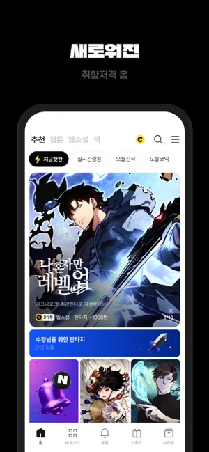 몰입감 높은 웹툰, 웹소설, 책 콘텐츠를 만나보세요.