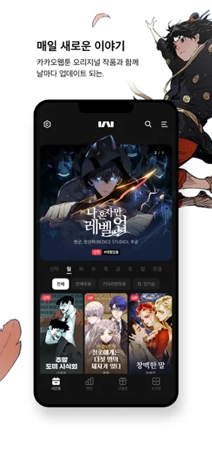 카카오웹툰에서 매일매일 쏟아지는 새로운 이야기!