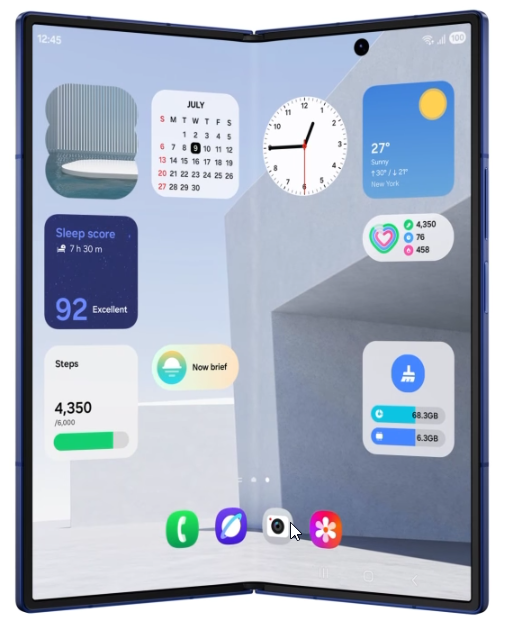 Z폴드7의 또 다른 핵심은 바로 ‘Galaxy AI’입니다. 포토 어시스트를 통해 사진 속 객체를 인식하고, 삭제하거나 위치를 바꾸는 등 스마트한 편집이 가능하며, Gemini Live 기능을 통해 실시간 정보 검색, 브리핑, 번역 등도 손쉽게 할 수 있습니다. Now Brief는 사용자의 일정, 운동 정보, 날씨 등 맞춤형 정보를 한 화면에서 보여주는 기능으로 아침 일정을 정리하는 데 유용합니다. 새로운 One UI 8은 대화면과 커버 디스플레이 모두에 최적화되어, 반응형 위젯과 커스터마이징 가능한 UI로 사용자 중심의 경험을 제공합니다. AI 시대에 맞는 편리함과 프라이버시 보호 기능도 강화된 점이 눈에 띕니다.